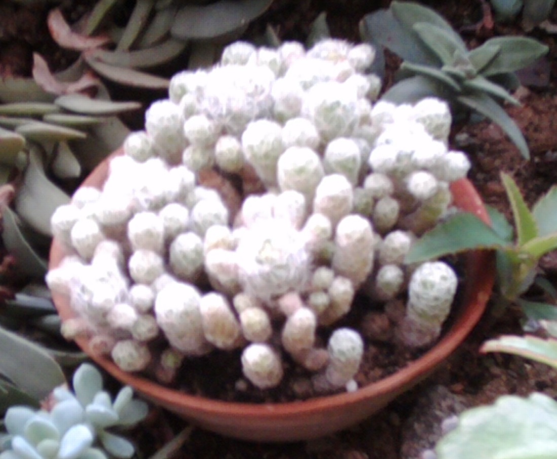 Mammillaria bocasana weiße Blüte mit Früchten |